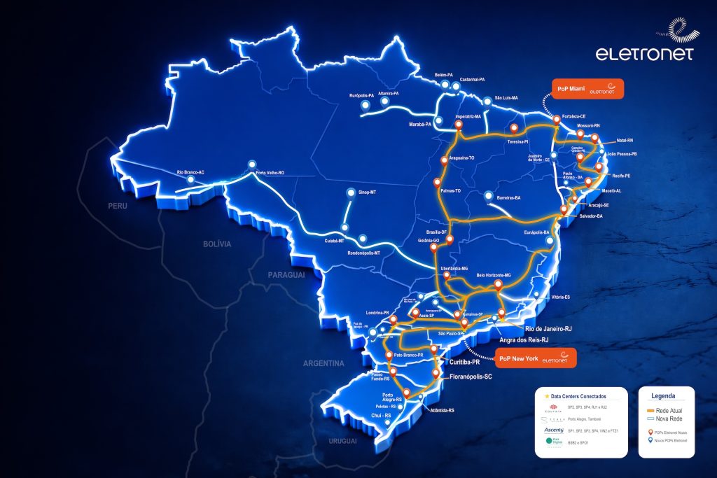 A Eletronet conecta centenas de cidades em 18 Estados brasileiros. Nossa rede percorre milhares de quilômetros oferecendo serviços de Transporte de Dados e Trânsito IP de alta velocidade em longa distância para operadoras de telecomunicações e provedores de internet. Acesse o Mapa da Rede e encontre o POP mais perto de você.